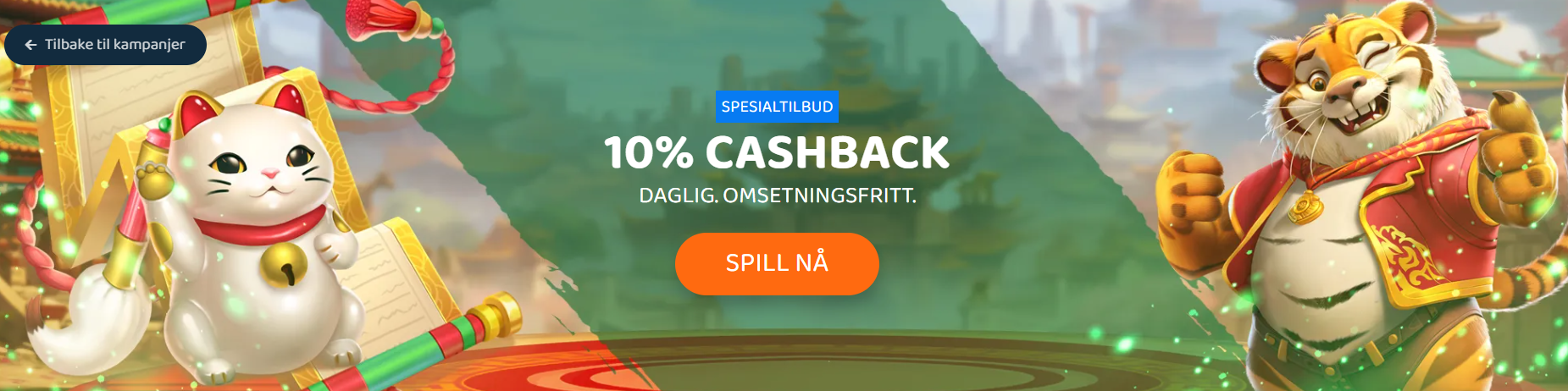 Den klare styrken er 10 % daglig cashback på tap fra spilleautomater. Cashbacken utbetales uten omsetningskrav. Dette gir reell verdi for faste spillere.
